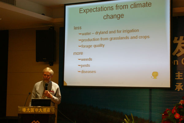 12月12日下午2:00,论坛在中国草学会名誉理事长、农业部原副部长洪绂曾主持下隆重开幕。中国草学会首席顾问、中国工程院院士任继周,中国农业科学院原副院长、中国工程院院士刘更另,江苏省农林副厅长王春喜,江苏省畜牧局副局长李建农,江苏农林职业技术学院副院长、研究员俞禄生,中国草学会顾问、中国科学院植物所研究员陈佐忠,中国草学会顾问、甘肃农业大学教授胡自治,中国老教授学会林业专业委员会主任任荣荣,中国草学会副理事长、中国农业大学教授周禾,中国草学会副理事长、中国农业科学北京畜牧兽医所研究员李向林,中国草学会秘书长、中国农业大学教授王堃,中国草学会副秘书长、中国农业大学副教授邓波,北京林业大学教授卢欣石,中国农业科学院草原所所长、研究员侯向阳,北京林业大学教授韩烈保,上海交通大学教授王兆龙,Charles Sturt University教授David Kemp,中国农业大学教授张英俊,兰州大学沈禹颖教授,南京农业大学沈益新教授、南京大学李建龙教授以及江苏省内研究草业科学的专家出席了开幕式。省农林副厅长王春喜致欢迎辞,论坛即进入报告阶段。