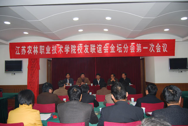 12月3日下午,江苏农林职业技术学院校友联谊会金坛分会成立大会在金坛市气象局会议室举行。金坛市副市长袁月冬、农林局局长汤和平、台办主任史爱平等30多位校友出席了大会。学院党委副书记王润贤、校庆办负责人张白银专程赴金坛参加成立大会。 会上,王润贤副书记代表学院致辞,他希望分会能够促进校友与母校之间的交流,促进学院更好地发展。与会代表讨论通过了金坛校友分会会长、副会长、秘书长、副秘书长建议名单,并进行了校友分会揭牌仪式。