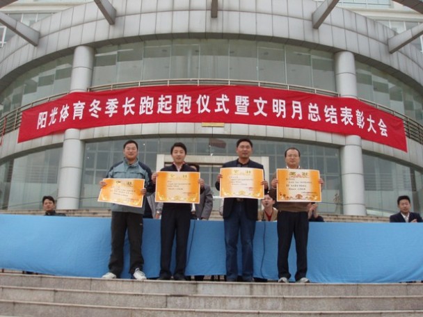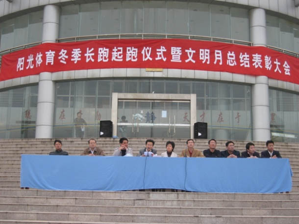 10月26日,我院在北校区图书馆前举行了第二届阳光体育冬季长跑起跑仪式暨文明月总结表彰大会。仪式上,学生工作处处长、团委书记毕德全对文明活动月中表现突出的先进集体和个人进行了表彰,他鼓励受表彰的同学再接再厉,把文明月中的优秀表现延续下去,并号召全院同学向他们学习。体育教研室谢谦梅主任介绍了我院第二届学生阳光体育冬季长跑活动方案,教务处赵明珍处长为该起跑仪式发令。