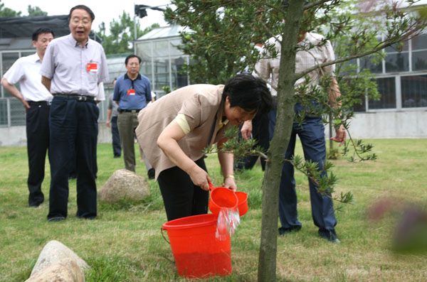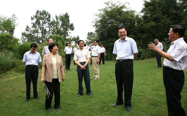6月13日下午,在江苏省政协主席张连珍、副主席张九汉的率领下,江苏省政协委员一行180余人来我院江苏农林科技示范园考察参观。学院党委朱洪生书记、尹汉学院长、俞禄生副院长、李振陆副院长陪同参观。学院实训基地鲜明的产业特色和美丽的生态环境给委员们留下了深刻的印象。