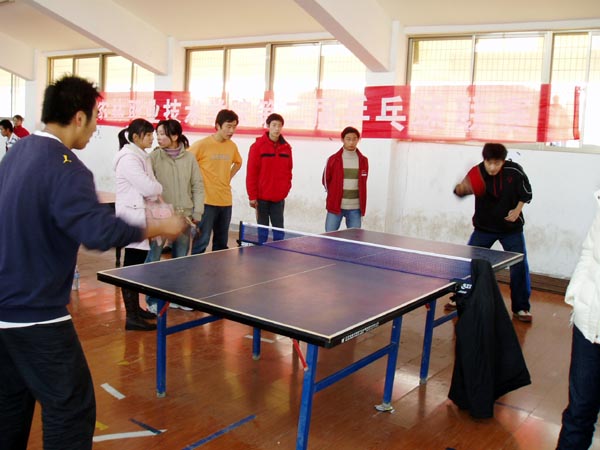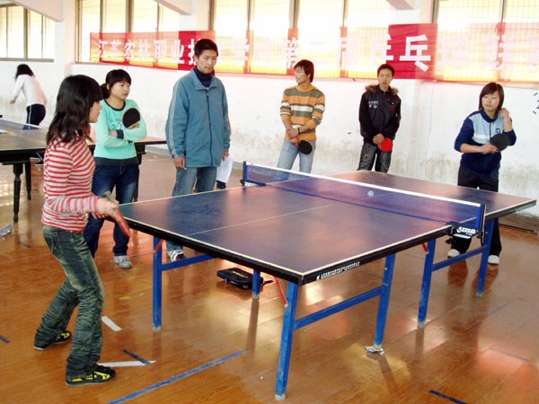 2007年12月8日—12月9日江苏农林职业技术学院第二届乒乓球联赛日前落下帷幕,本次比赛共有9个代表队参赛,经过紧张角逐,最后江宁校区、经济贸易系、风景园林系分获团体赛的冠、亚、季军,王昊、任斌、李凯分获男子单打的冠、亚、季军,董丹、刘惠、吴芳芳分获女子单打的冠、亚、季军。