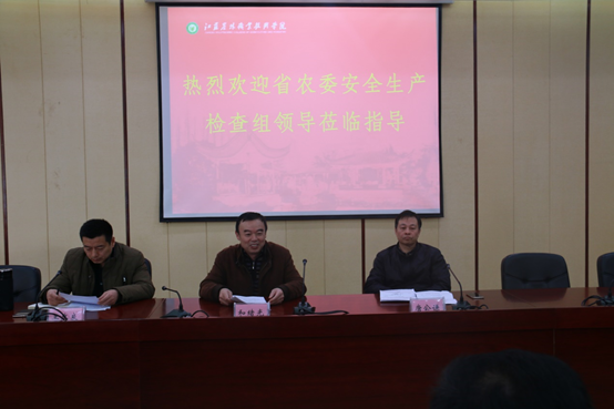 检查汇报会上,和绪光组长首先传达了省委及省农委对于省直属单位安全生产工作的具体要求,并通报了各直属单位的安全工作状况。随后,汪建春副处长分别从消防安全、食品安全、交通安全、危化品安全管理、学生生活区和学习区安全管理方面汇报了我院2016年的安全工作开展情况及今后工作安排。