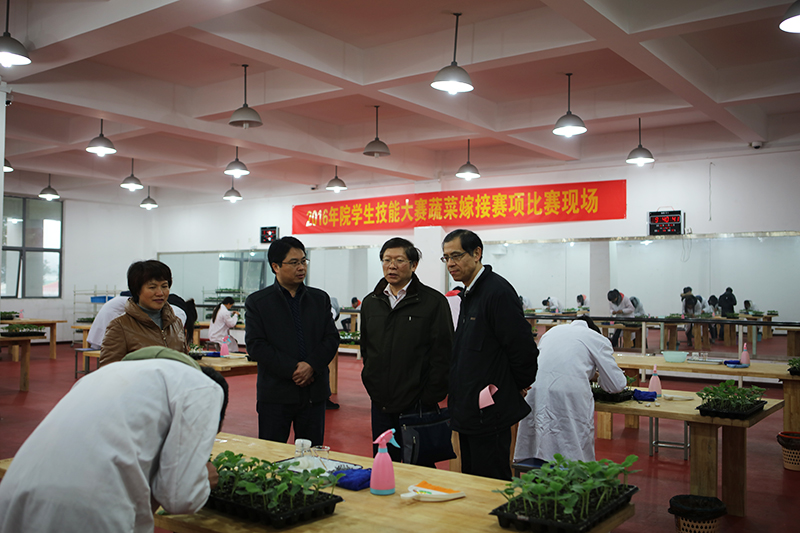 江苏省农业委员会科教处姜雪忠处长、江苏省教育厅高教处王建军调研员、我院副院长简祖平现场指导