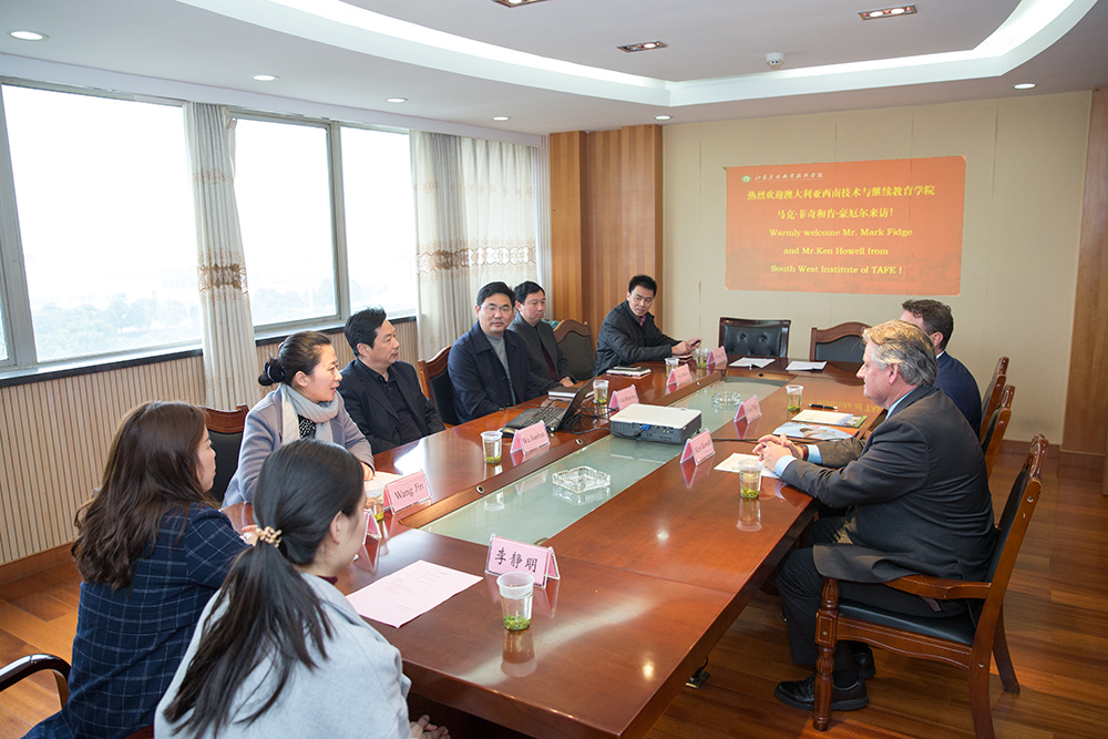 12月13日,澳大利亚西南技术与继续教育学院首席执行官马克·菲奇先生和业务发展总监肯·豪厄尔先生访问我院。学院巫建华院长、曹仁勇副院长及相关部门负责同志参加了交流会。