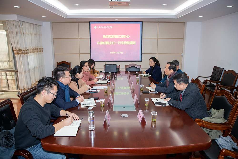 12月24日上午,镇江市外办考察组一行4人在副主任许德成的带领下来我院调研留学生管理工作。我院党委委员、办公室主任王瑾,国际教育学院负责同志接待了考察组一行。