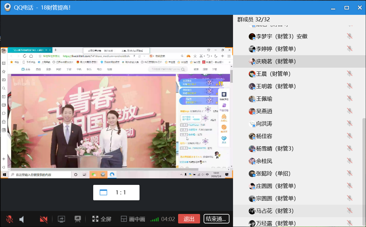 活动按照“出彩青春”“战疫青春”“奋斗青春”“绽放青春”4个篇章,先后开展了第24届“中国青年五四奖章”获得者风采展示、青春故事分享会、团团直播间访谈、五四网上主题团课、优秀文化产品展播等活动,以学习宣传贯彻习近平总书记关于青年工作的重要思想为主线,集中讲述广大青年踊跃投身疫情防控、脱贫攻坚的生动故事,集中展示新时代中国青年爱国担当、奋发向上的精神风貌。活动结束后,各班团支部间通过QQ、微信群等线上方式积极参与互动,表达自身感受和交流想法。