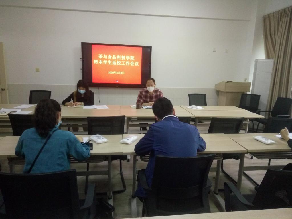 正值转本学生返校备考之际,5月8日下午,茶与食品科技学院在综合楼317会议室举行转本学生返校工作会议,该院领导以及全体毕业班班主任、学工办老师参加会议,会议由党总支副书记谢春芹老师主持。