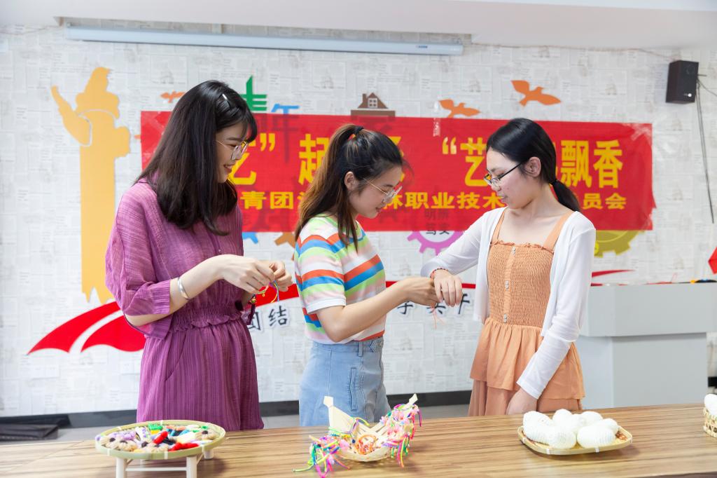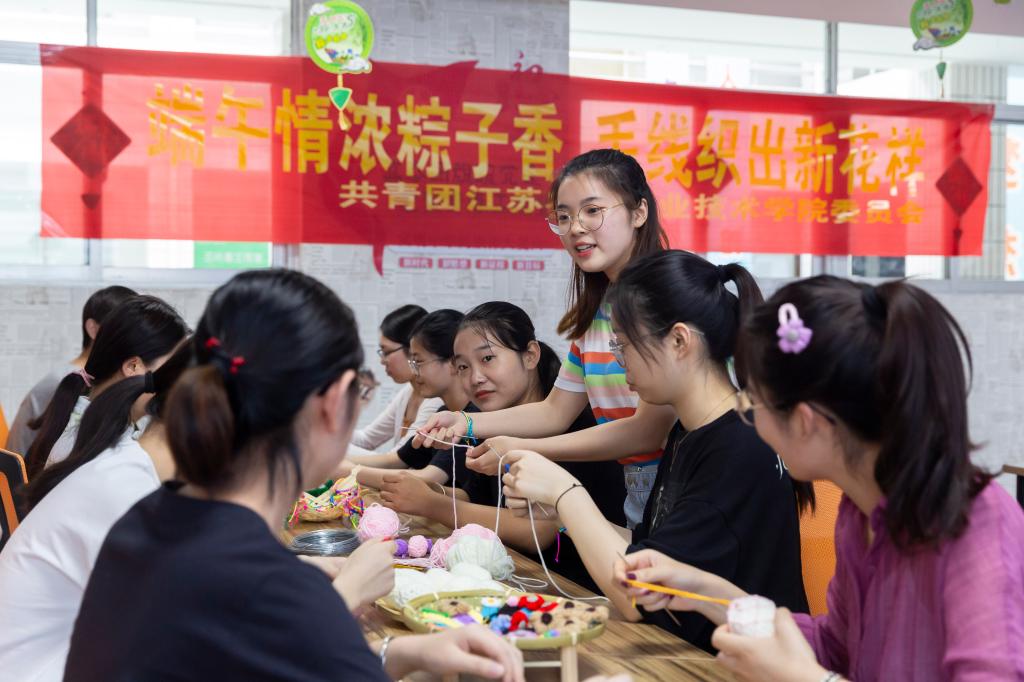 为了弘扬传统文化,深入了解了传统节日的真正内涵。6月22日,学院创新毛线立体编艺传承团在新禾创客空间举办了“‘艺’起传承,‘艺’起飘香”迎端午活动,用毛线创新编织了粽子、鸭蛋、五彩绳、网兜、发夹和百花齐放系列,作品精美、形态逼真、惟妙惟肖。现场,前来参观的师生们一起“赏百花、‘吃’粽子、系五彩绳、‘食’鸭蛋、佩网兜、带发夹”,跟着传承团成员学了起来,大家其乐融融,过了一个与“粽”不同的端午。