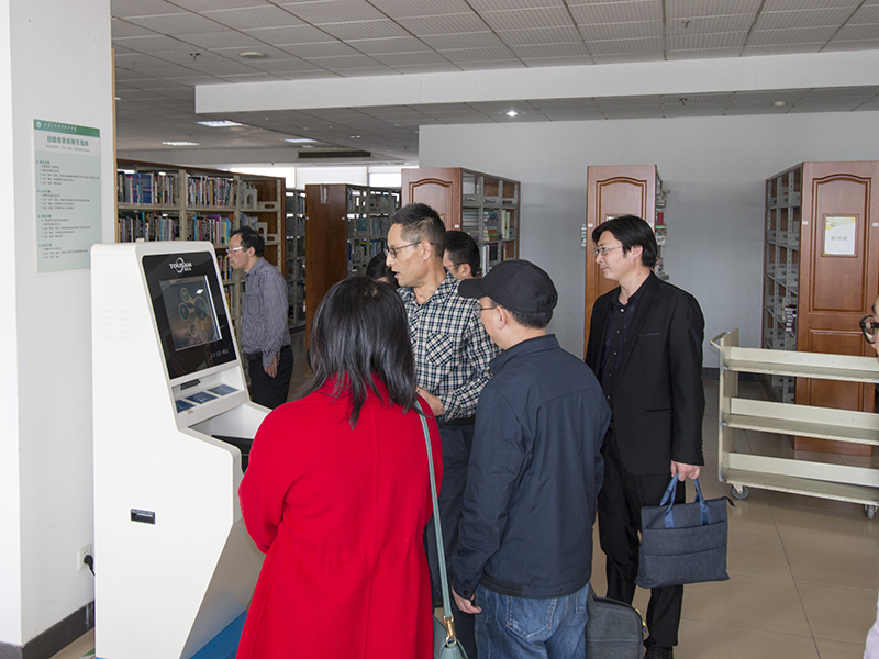 石继华副馆长一行还参观了图书馆的各服务窗口,重点考察了图书馆自助借还系统(RFID)的使用情况,并对该系统的实际运行与馆员进行了现场交流。石继华副馆长表示,通过此次考察对RFID的运行有了更深入的了解,有助于他们馆更好的建设和使用自助借还系统。
