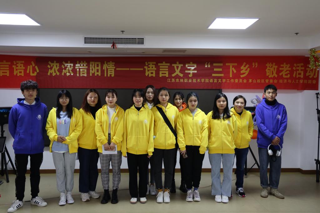 11月21日下午,我院约20余名师生赴句容市逸仙颐养院开展以“悠悠言语心,浓浓‘惜阳’情”为主题的“三下乡”走进敬老院活动。此次活动由学院语言文字工作委员会主办,茅山校区管委会、经济与人文学院团委和“文之源”社团共同承办。