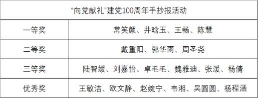 本次活动面向入党积极分子和发展对象,大家精心构思,设计制作,作品内容丰富多彩,以改革开放以来的伟大成就、“十四五”规划的宏伟蓝图、伟大“中国梦”以及脱贫攻坚、乡村振兴、抗疫典型、志愿服务、时代楷模等为题材。经过老师认真评审,最终19幅作品入围,常笑颜等四位同学荣获一等奖。