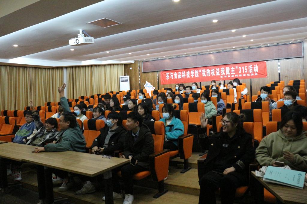 为增强消费维权意识,保护自身合法权益,茶与食品科技学院团委于3月15日晚在创客空间207开展了“我的权益我做主”315主题活动。