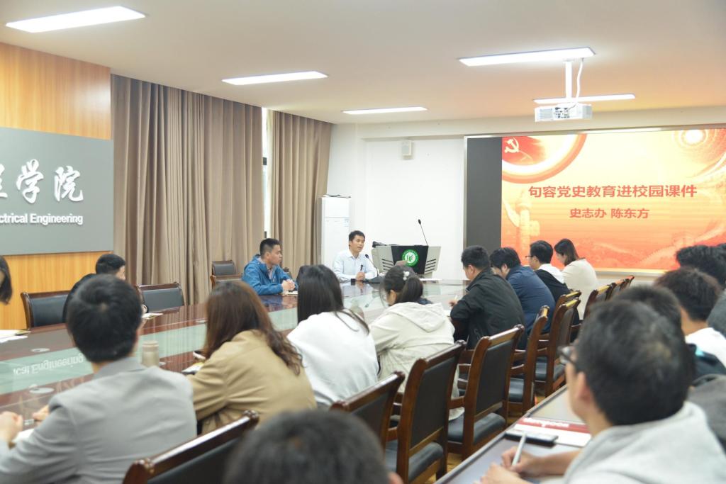 为深入推进党史学习教育,4月28日,机电工程学院党总支举办“红色句容 党史专题讲座”活动,邀请了句容市史志办陈东方主任做专题讲解。