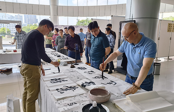 活动现场,书画名家以笔会友,以画沁心,挥毫泼墨,现场创作了近50余幅书画作品,主题鲜明、气势恢宏、内涵丰富,描绘了党的百年历史,祖国万象更新的变化,表达了对中华优秀传统文化的坚定信心和浓浓的爱国情。