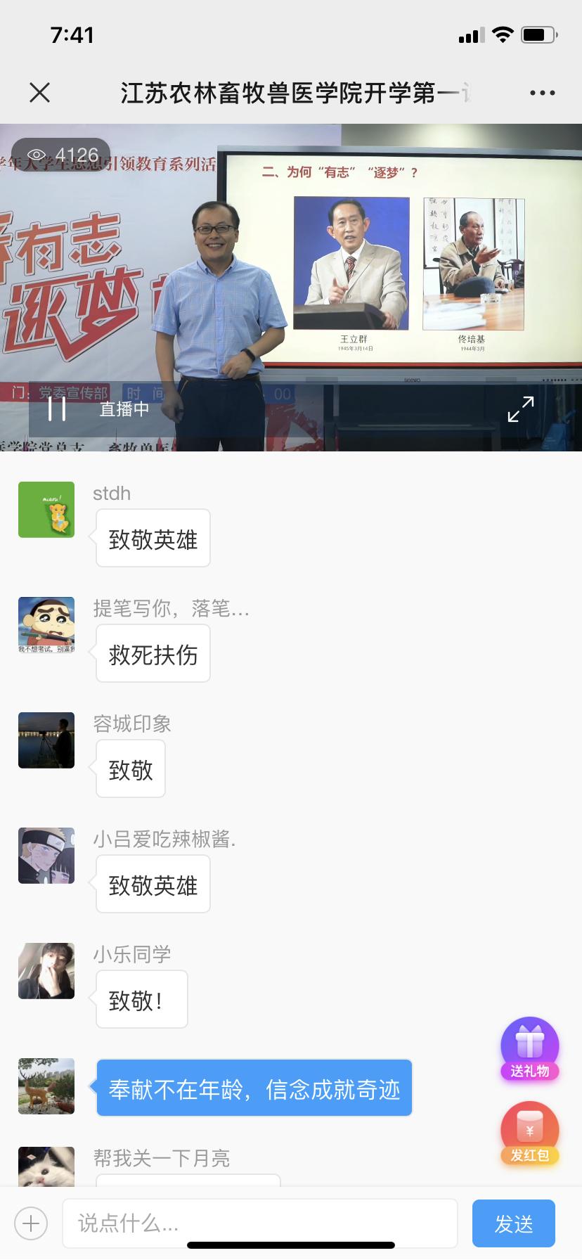 9月3日晚7:00,畜牧兽医学院党总支邀请校党委宣传部副部长唐智为同学们开展“大学生思想引领教育系列活动之开学第一课‘青春有志 逐梦前行’”线上主题教育讲座,本次活动吸引了4000余人次。
