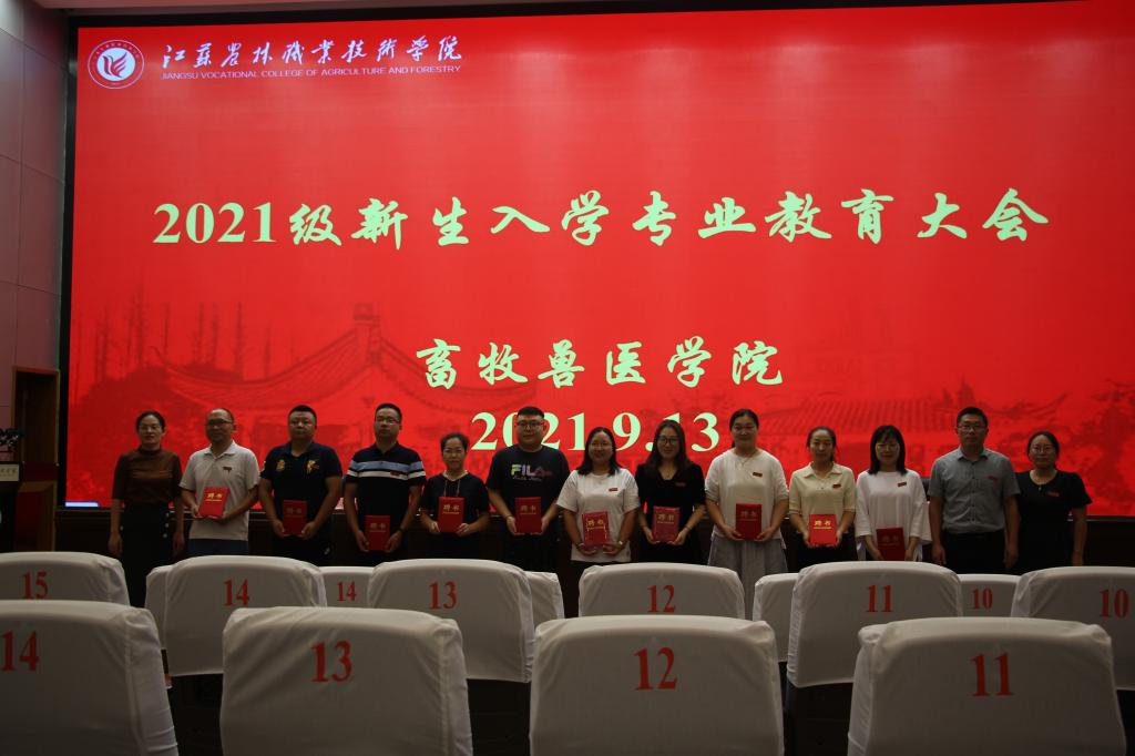 畜牧兽医学院教师代表孟慧代表全院教师对新生的到来表示热烈。希望与同学们能成为亦师亦友的伙伴,共同进步共同成长,最后希望同学们能够度过一个收获满满的大学生活。学院院长朱孟玲、党总支书记汪善锋向全体2021级班主任颁发聘书并合影留念。