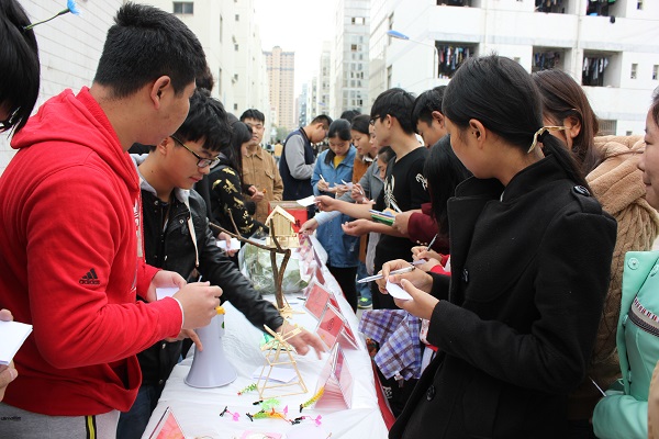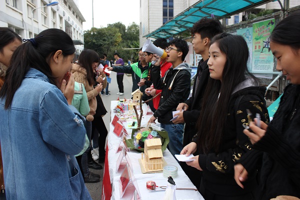 精妙纤纤五指动,荟萃栩栩千品生,11月17日,畜牧兽医系第一届宿舍DIY手工创作大赛作品终极投票环节在食堂门口举行。 比赛共收到剪纸、电子设备发明、折纸、贴花等100余件手工作品。经过层层筛选,12件作品脱颖而出,进入现场盲投环节,过往同学纷纷为自己喜爱的作品投上一票,最终,2#211宿舍作品《树屋》、12#108宿舍作品《爱的小屋》和12#319宿舍作品《童真》以高票数分获前三名。