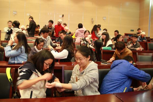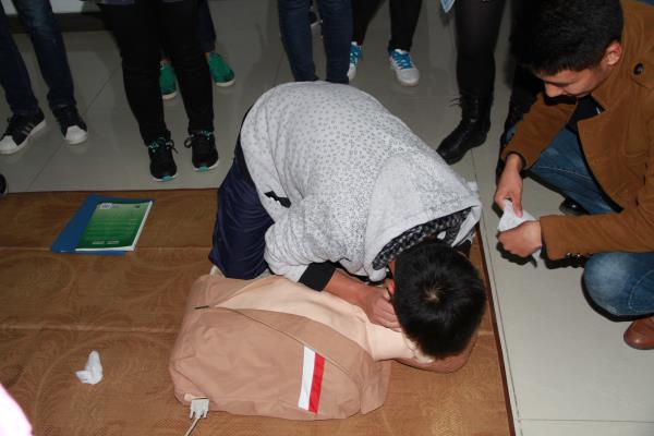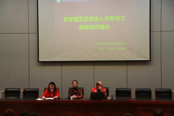 11月18日,农学园艺系分团学生会联合7号、10号大学生社区服务站在研发楼报告厅开展了新生急救知识培训。各新生班级宿舍长及主要学生干部参加了培训。 此次培训邀请了句容市红十字会周菲菲会长、江苏省未成年犯管教所邹田洪主任、句容市博爱学校郑宏主任等5位专家为同学们全面普及急救知识,培训急救技能。邹田洪主任围绕红十字精神、救护新概念、创伤救护等方面,重点讲解了气道异物梗塞现场救护,烫伤、触电等创伤救护、突发事故、意外伤害现场自救互救等知识。周菲菲会长现场演示了伤口包扎的技巧及注意事项;并用模拟道具人形象生动地讲解了心肺复苏和人工呼吸技巧。 培训中,5位专家还指导同学们进行了现场实践操作,让大家受益匪浅,为构建和谐安全的校园生活搭建了一座桥梁。