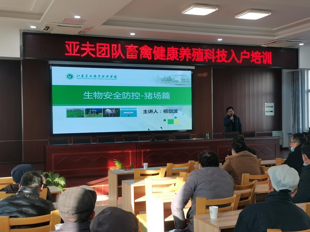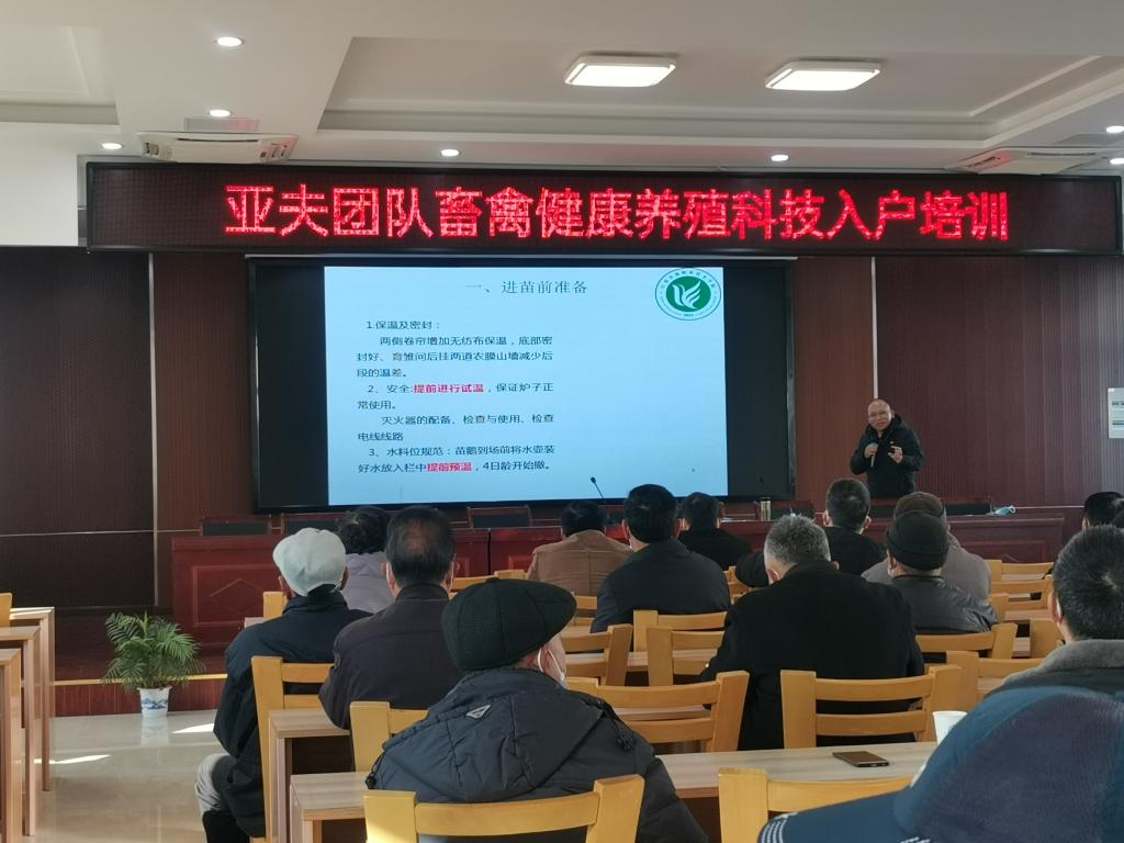 目前天气转入深冬季节,正是动物病毒性传染病的高发时节,杨剑波博士和宋春雷博士分别就《生物安全防控-猪场篇》和《肉鹅饲养管理与疾病防控》进行了培训,并与53户农户代表进行了深入的交流。