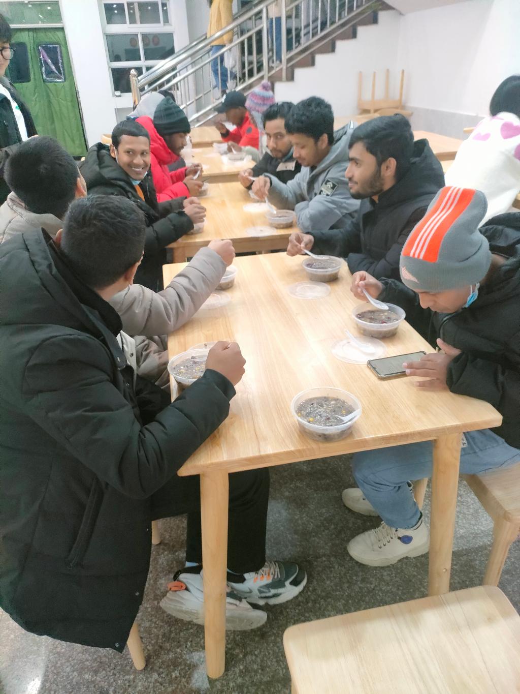 晚上八点左右,学院各校区食堂一楼就餐窗口已然排起了长队,有序领取腊八粥,一碗热气腾腾的腊八粥,不仅代表着学院后勤部门的一份浓浓心意,也代表着全体师生对2022年的美好憧憬!