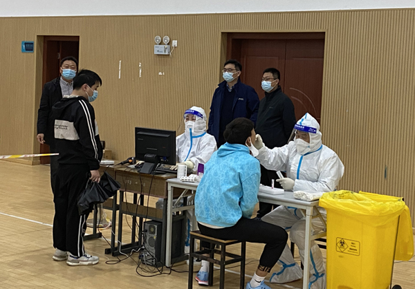 组建茅山校区党总支“党员志愿服务队”,党员齐上阵。协助开展采样点的现场秩序维护和信息数据采集工作,累计完成核酸采样4696人次,在协助医护人员核酸采样工作中发挥了积极作用。党员教师创作快板、书法等作品,为师生抗疫加油鼓劲。编写以“意”战“疫”茅山校区疫情防控工作简报,通报工作情况、宣传先进事迹、表达师生心声。