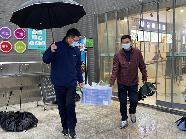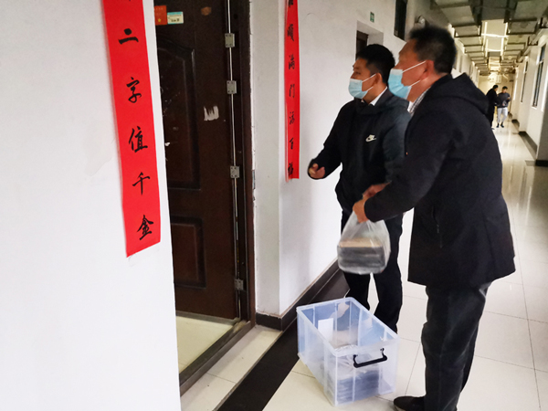 茅山校区团委第一时间向全校区青年发出倡议书,号召广大团员、青年做抗击疫情的“青年志愿者”。当前,茅山校区党总支共成立6支青年志愿突击队,入住6栋学生公寓,形成书记分管一栋楼,辅导员承包6层楼,青年学生服务6个宿舍的工作模式。各党员教师带领青年志愿者深入学生宿舍开展“敲门行动”,检查健康码和行程码,切实做到应查尽查,不落一人、不漏一室、全面筛查。为在宿舍健康观察的学生送餐,开展线上心理疏导。党员和青年志愿者们的辛勤努力,为打赢这场大仗硬仗提供了有力保障。