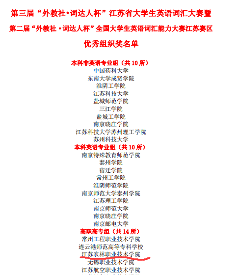 经过激烈角逐,我院1名同学获高职高专组特等奖;4名同学获高职高专组一等奖;13名同学获高职高专组二等奖;29名同学获高职高专组三等奖;2名同学获本科非英语专业组三等奖;我院荣获优秀组织奖。