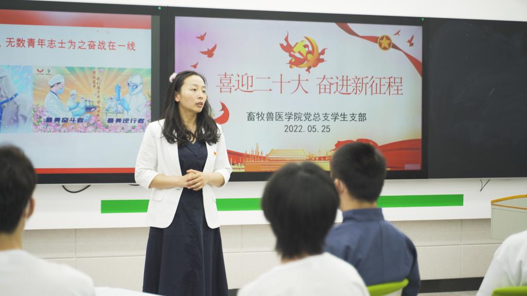 5月25日,畜牧兽医学院党总支学生党支部在工科楼智慧教室举办了“喜迎二十大 奋进新征程”主题党日活动,以实际行动迎接党的二十大胜利召开。