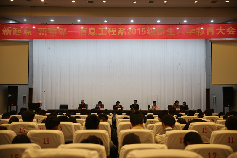 为帮助新生顺利适应本部学习、生活,尽快确定学习目标。10月14日下午,信息工程系在图书馆报告厅举行了2015级新生入学教育大会。系部领导、各教研室、学工办负责人、2015级新生班班主任及290名新生等参加了大会。