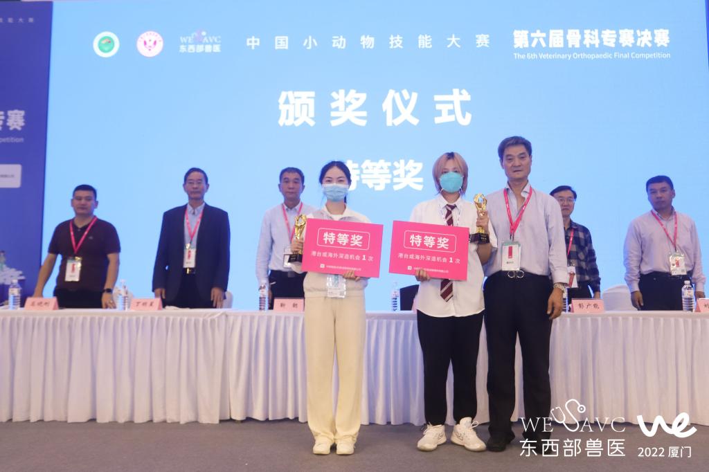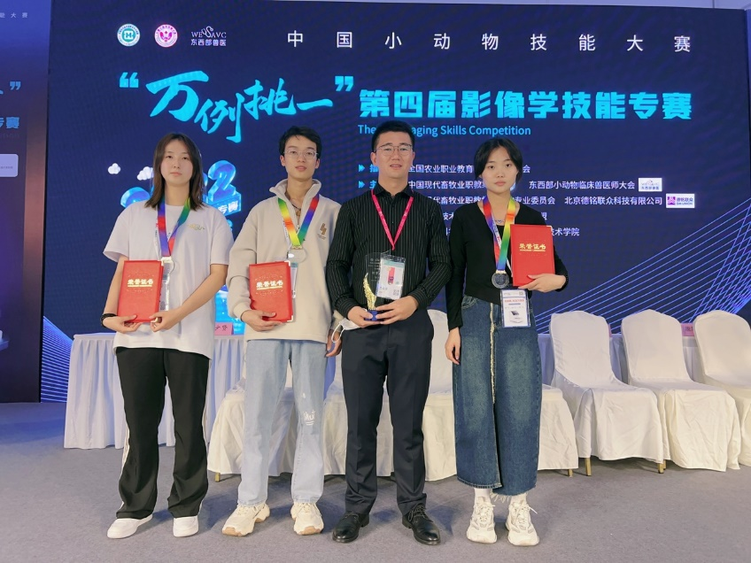 在骨科专赛中我院连续5年蝉联特等奖,刘月、陈晓慧、辛嘉威、陈静同学分别获得特等奖、一等奖、二等奖、三等奖。刘国芳、郝盼、杨家军老师获得优秀指导老师,我院获得优秀组织奖。在小动物影像学技能专赛中,耿子婕、许明珠和杨睿获特等奖,钱蓉、崔璇、朱禹好获一等奖。在第一届皇家杯宠物营养学知识竞赛中,共有来自全国职业院校上千名学生参加,40位同学通过预赛突出重围,在决赛中刘梦朵、陆雨霏两位同学喜获二等奖,陈明和王静老师获得优秀指导教师。