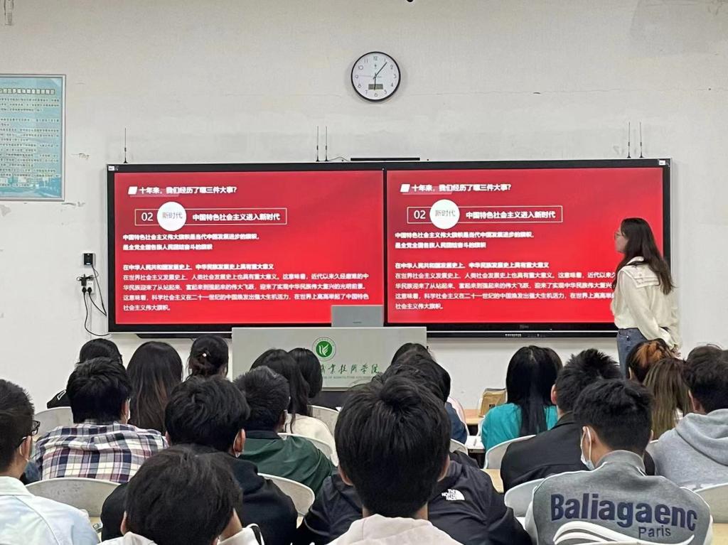 活动期间,各班组织全体学生收看党的二十大开幕会并撰写心得体会。主题班会上,同学们纷纷踊跃发言,畅谈心得体会,表达了自己不忘初心跟党走的坚定信念。同学们纷纷表示在今后的学习和生活中要以实际行动践行好党的二十大精神,自信自强、守正创新、踔厉奋发、勇毅前行,扎实学习专业知识,练就过硬本领,把论文写在祖国大地上,努力做一名合格的“一懂两爱”的新农人。