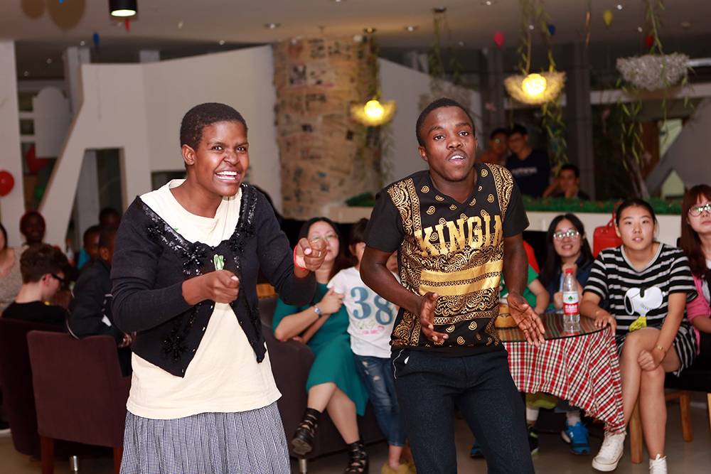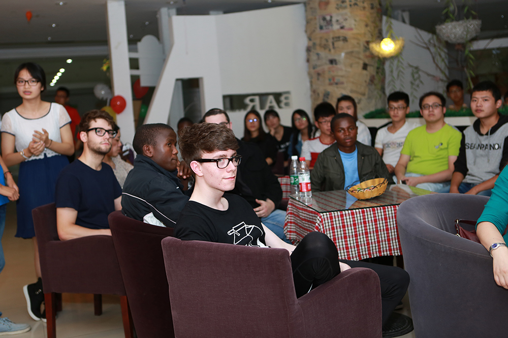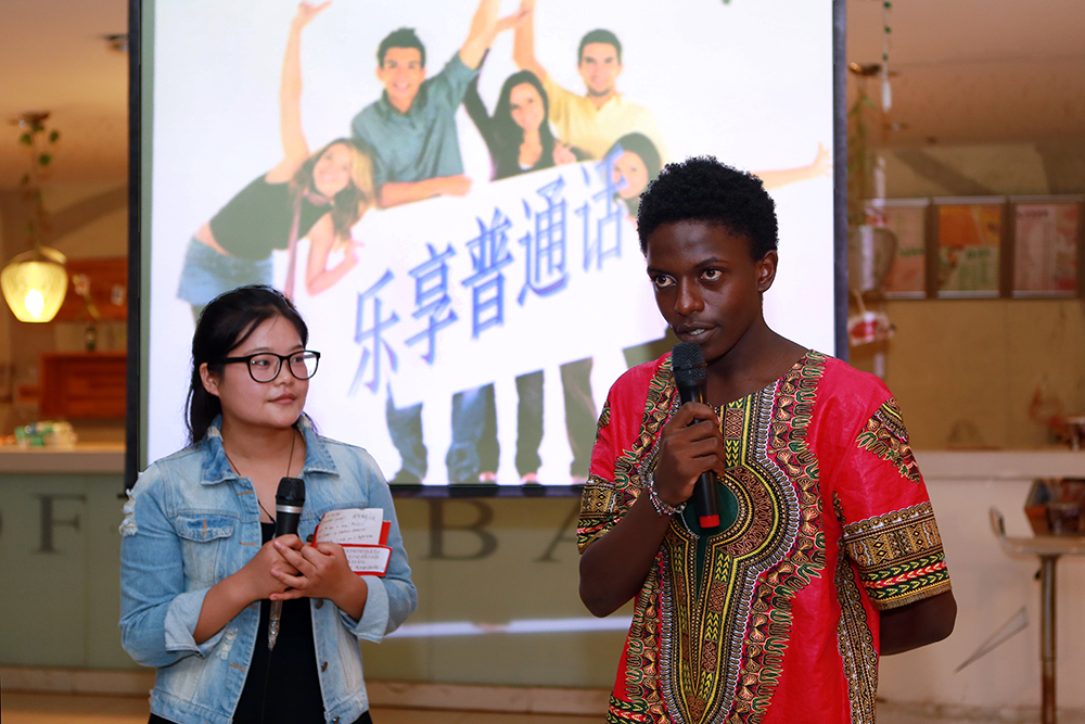 9月17日晚7:00,我院首次“汉语角”活动——“乐享普通话(Enjoy Mandarin)”在图书馆学习休闲吧正式“开嚼”。 《水调歌头》、《再别康桥》等中华经典诗词的朗诵表演声情并茂,绕口令、“你来比划我来猜”、传话等游戏轻松穿插,寓教于乐、生动有趣,现场欢声笑语不断,留学生们充分锻炼了汉语口语,也感受到了中国师生的友好与热情。 汉语角的设立,是为了给留学生提供更好地学习汉语的机会,而且能够在学习的同时增进对中国文化的了解,体会汉语的神奇和奥妙。对于本校中国学生,在增进其本身对中国文化见解的同时,也让他们在中文教学中收获了知识、友谊和乐趣。本次活动由人文艺术系、院国际交流中心承办,是我院第18届全国推广普通话宣传周系列活动之一。国际交流合作中心王瑾主任,人文艺术系相关教师,Lattitude项目志愿者、留学生等参加了本次活动。