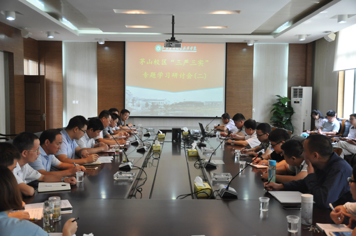 近日,茅山校区党总支围绕“严以律己,严守党的政治纪律和政治规矩,自觉做政治上的明白人”这一专题组织召开了第二次“三严三实”学习研讨会,学院党委副书记王润贤及茅山校区党总支全体人员参加了研讨会。会议由校区管委会主任汪国好主持。