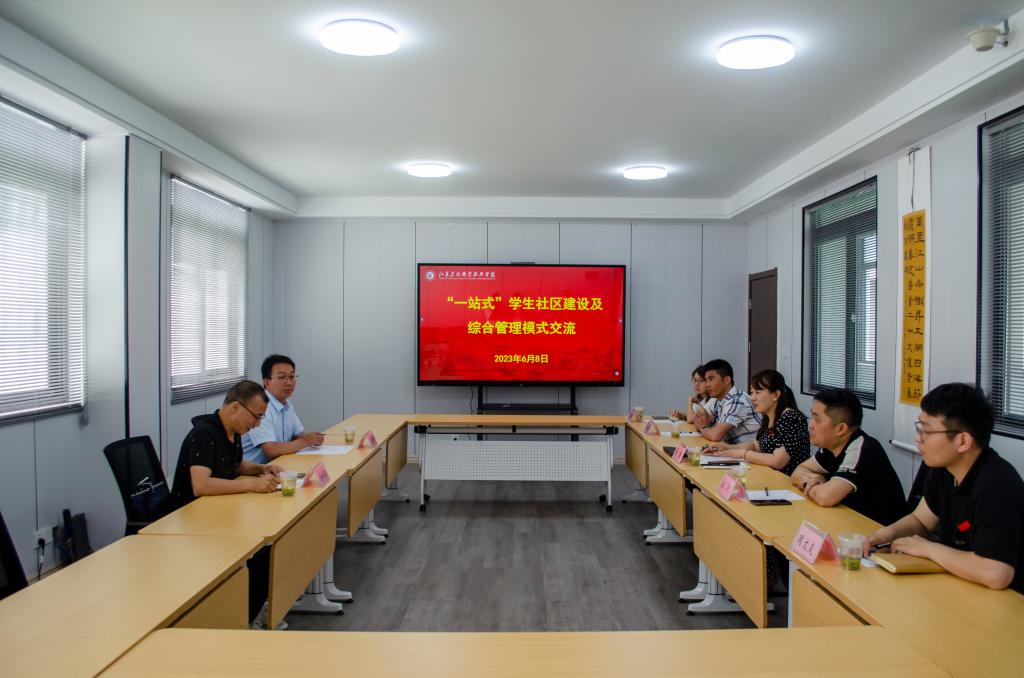 茅山校区党总支负责人董慧对李文志一行的到访表示热烈的欢迎,在简单介绍学院的基本情况后,详细介绍了学院“一站式”学生社区建设历程、建设内容、取得成效等,并围绕我院构建的“三横三纵、四位一体”辅导员队伍建设体系进行了分享。李文志对我院学生社区实践育人的模式,六点半大美课堂、阳光四点半体育课堂、慧姐谈心屋等品牌项目的打造给予了高度评价。座谈会上,双方还就“一站式”学生社区队伍建设、经费保障等问题进行了充分的交流。