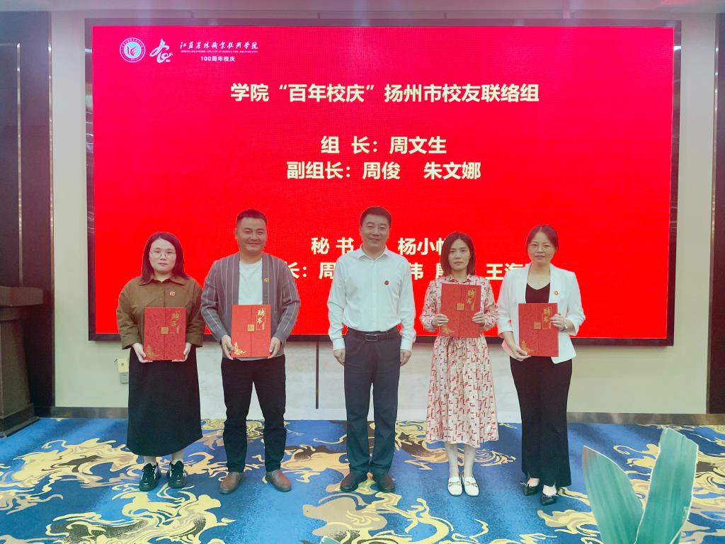 9月23号下午,学院“百年校庆”扬州市校友联络组成立仪式在扬州仪征举行,学院党委委员、副院长颜志明,关工委常务副主任江德明,基础部、信息工程学院等负责人出席仪式,来自扬州各地的9名校友代表参加了仪式。