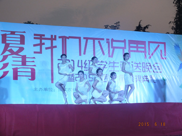 又到六月,茅山校区2014级学生即将离开校区,返回本部。6月18日晚,校区在篮球场举办了“林夏杉青 我们不说再见” 2014级学生欢送晚会暨2015校园之星颁奖典礼,学院党委副书记王润贤、校区管委会主任汪国好、副主任汤波等领导到场观看了演出。