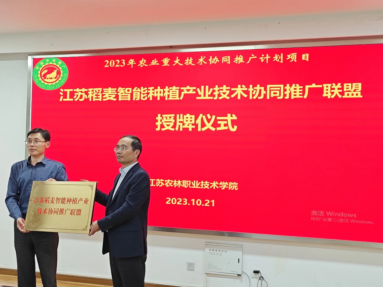 会上,曹仁勇代表学院致辞。项目首席专家刘永华汇报了项目实施方案,各参与单位对实施方案进行了充分研讨。会议期间还举办了江苏稻麦智能种植产业技术协同推广联盟成立大会和联盟、专家指导站、专家工作室的授牌仪式。