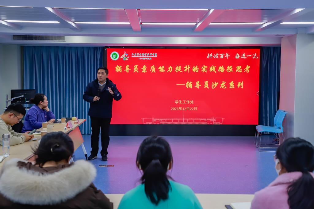 为提升辅导员队伍的理论水平、职业能力和专业素养,助力参赛辅导员备战2023年辅导员素质能力大赛,12月22日下午,学院在工科楼一楼会议室开展了辅导员素质能力提升沙龙活动。