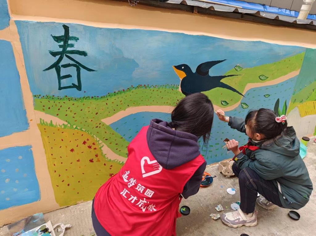 授牌仪式结束后,学院“笔尖下的美丽乡村”实践团师生带领小学生进行了墙绘,文化墙按照“二十四节气”时间顺序依次排列,内容包括物候规律、农事农谚及反映季节变化的农事活动彩绘等,画面色彩丰富、制作精美,颇具艺术性,让原本单调的墙面成为了“会说话”的传统文化的“传播者”。今后,风景园林学院将持续发挥学科专业优势,继续开发针对中小学不同学段的劳动教育实践项目,比如“微景观,大世界——认识植物,热爱自然”“小木作,大创意——弘扬工匠精神”“节能减排我知道—— ‘低碳’出行”等,与中小学“手拉手”协同共建,共同搭建全员、全过程、全方位育人平台,在以劳强体、以劳增智、以劳育美、以劳创新中推动形成大中小协同育人新局面。