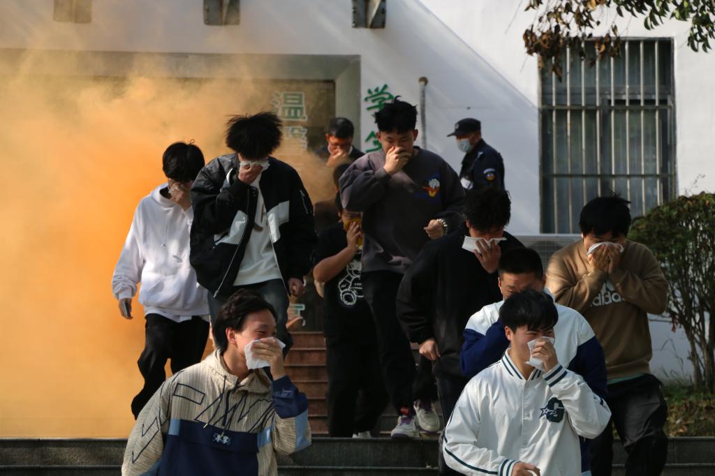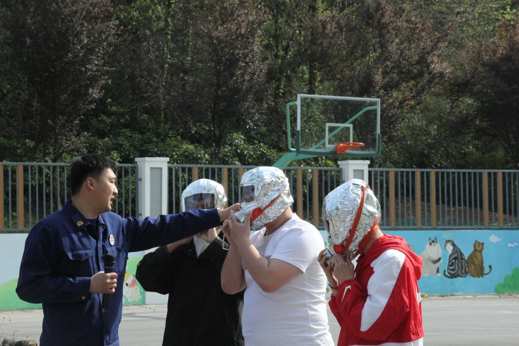 活动分为消防疏散练、消防技能培训实践等环节。浓烟起,警报响。同学们在保安和驻楼老师的组织引导下,湿巾捂鼻,低姿匍匐,以最快的速度安全有序撤离到室外指定区域。句容市消防与救援大队参谋吴鹏就校园火灾的常见类型、产生原因、灭火方法进行了讲解与分析,演示了灭火器、消火栓和防烟面具的使用,并指导同学们进行了现场操作。