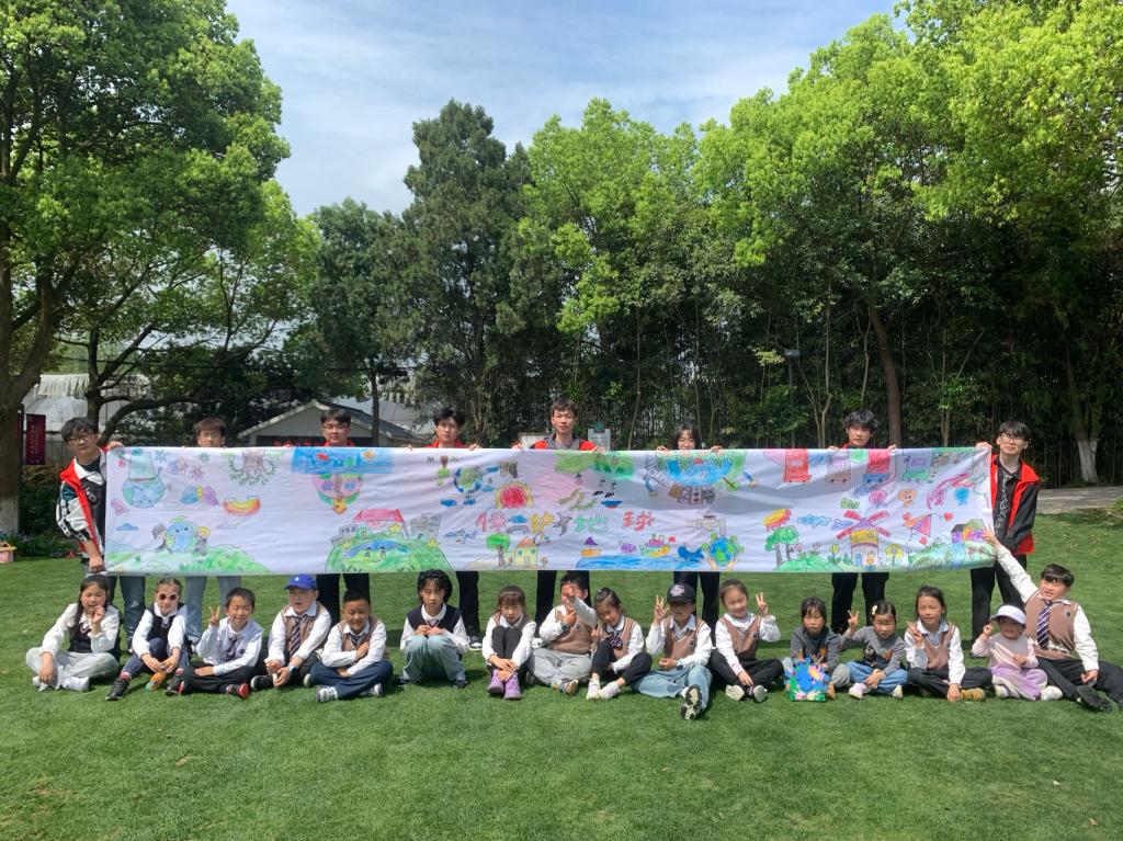 此外,志愿者们还组织了一场别开生面的绘画活动。孩子们围绕“绿色地球”这一主题,用稚嫩的画笔描绘出他们心中的美丽家园。大家通力合作,完成了一幅近10米长的巨幅画作,传递了他们保护地球、珍爱环境的坚定决心。