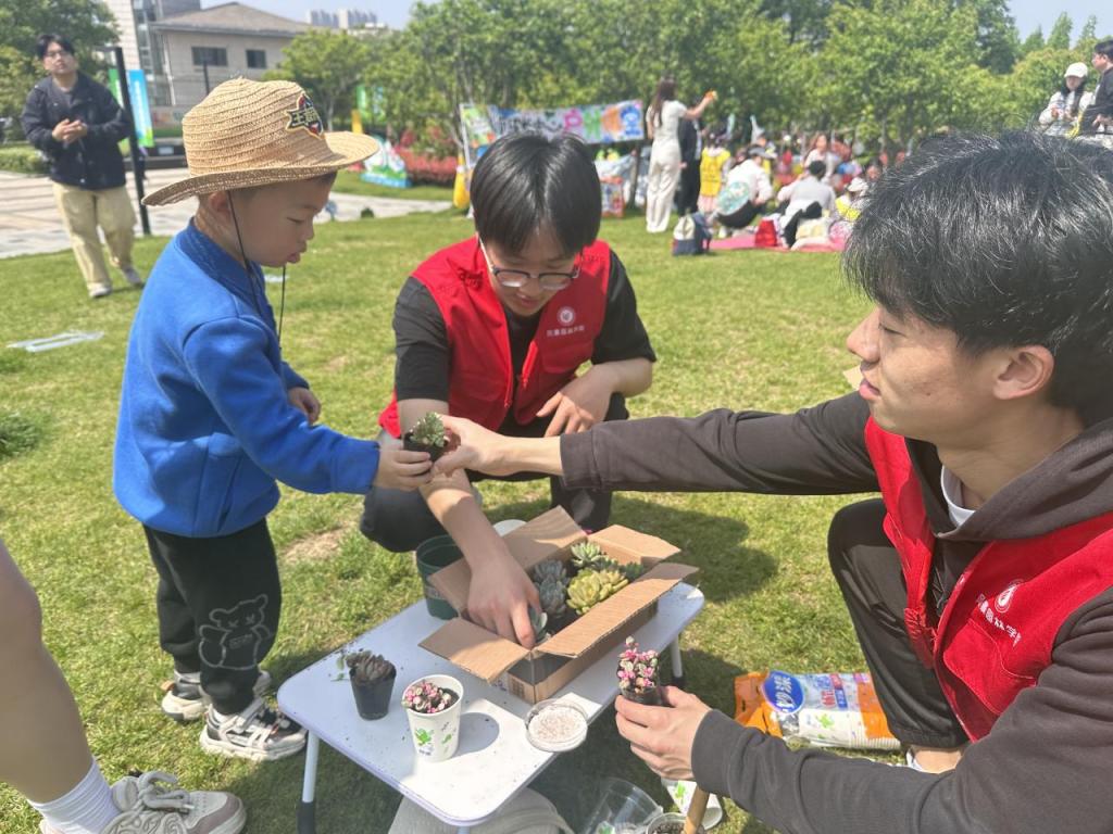 活动面向市民设置了世界地球日“捡”约徒步、垃圾分类、低碳手作三个主题活动。志愿者们徒步从学校出发前往崇明公园,并沿途收集卫生死角垃圾;到达公园后,为过往市民发放”垃圾分类”小扇子,讲解垃圾分类的重要性;最后在公园人群密集处摆摊设点,用泥土和自制环保花盆与市民一起设计多肉盆栽,市民用空的塑料瓶可以兑换盆栽。