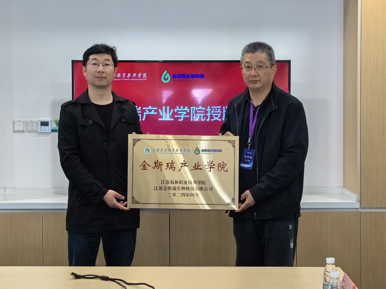 校企双方围绕产业学院合作协议进行了深入讨论,在共同开发在线课程、师资队伍培育、订单班开设等方面达成一致,并举行了金斯瑞产业学院签约授牌仪式。随后,曹正与“金斯瑞”订单班学生和毕业生代表开展座谈,了解学生们在企业的工作与生活状况,鼓励他们努力工作,并邀请他们常回母校看看。