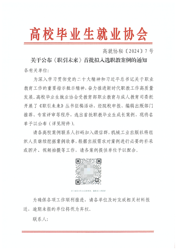本次案例征集旨在深入学习贯彻习近平总书记对职业教育工作作出的重要指示和党的二十大精神,助力职业院校更好地宣传在“双高”中取得的成果。本次案例入选也是我院毕业生高质量充分就业的代表性成果,充分展示了学院“双高”建设的突出成效。