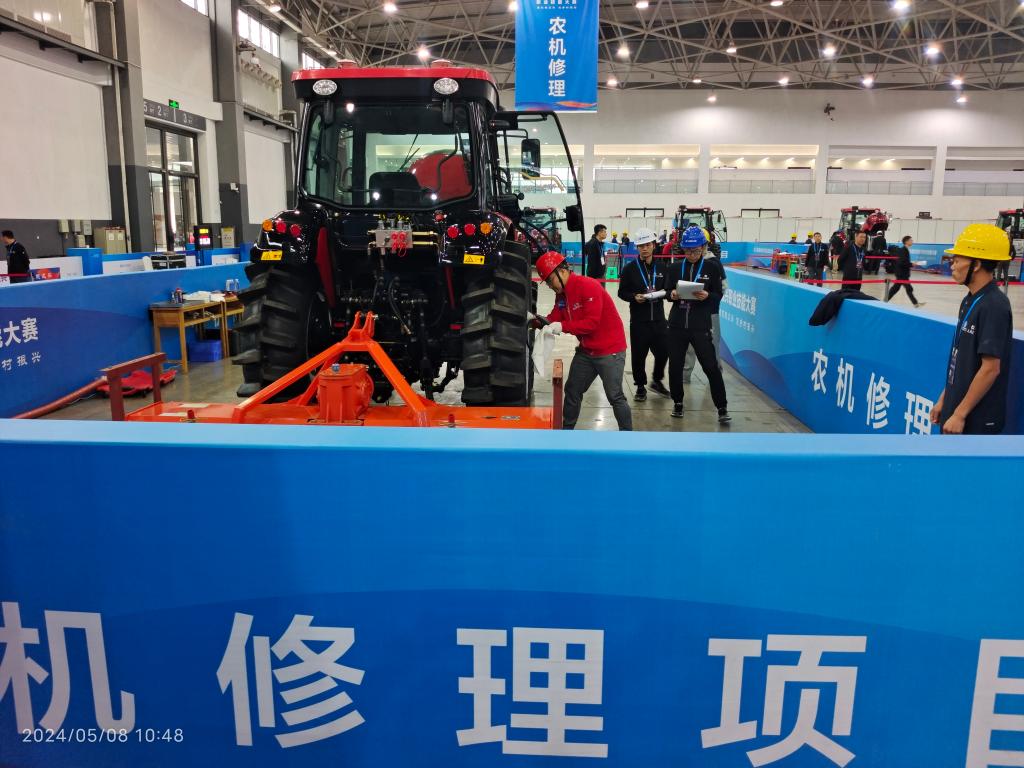 农机修理项目包括大型轮式拖拉机悬挂旋耕机机组维修和自走式全喂入谷物联合收割机维修,主要考核选手拖拉机技术维护、拖拉机综合故障诊断与排除、总成件(含机构和系统)的拆装及零件鉴定;谷物联合收割机技术维护、谷物联合收割机综合故障诊断与排除、谷物联合收割机各总成件的拆装及零件鉴定的技术技能,全国共有64名选手参赛,通过2天的比赛,共决出金奖2项,银奖4项,铜奖6项。