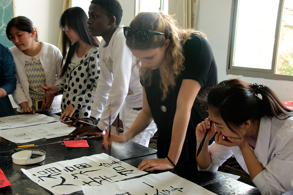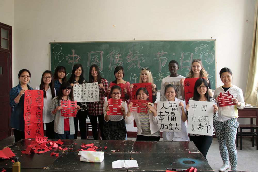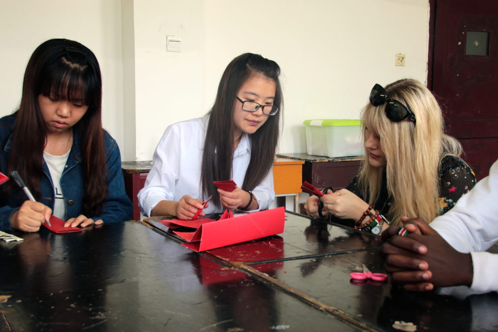 近日,人文艺术系在各班级开展了以学习和弘扬中华传统文化为主题的团活动。 活动紧紧围绕培育和践行社会主义核心价值观,弘扬中华优秀传统文化。各班级通过主题班会、知识竞赛、演讲、诗朗诵等多种形式的活动来体现中华优秀传统文化。14商务英语班结合专业特色,开展了一堂生动的学习中华传统文化主题班会课,她们用英语向我院外籍志愿者和留学生讲述了中国的传统文化,并向她们展示了书法、剪纸和包饺子等中华传统文化。