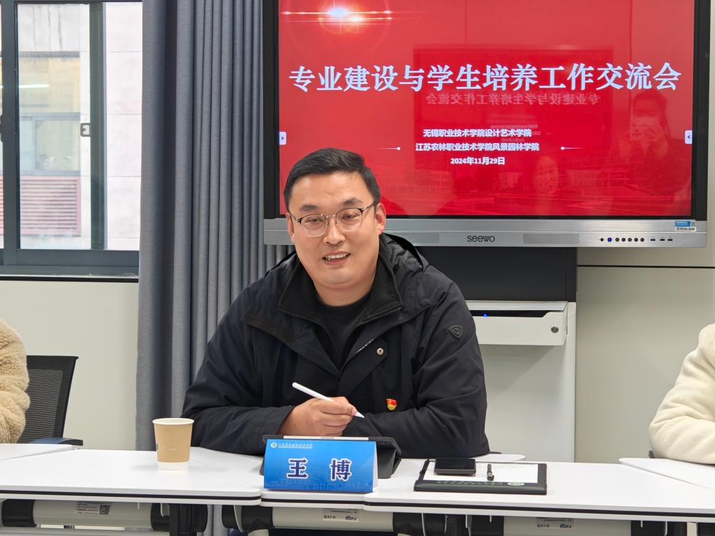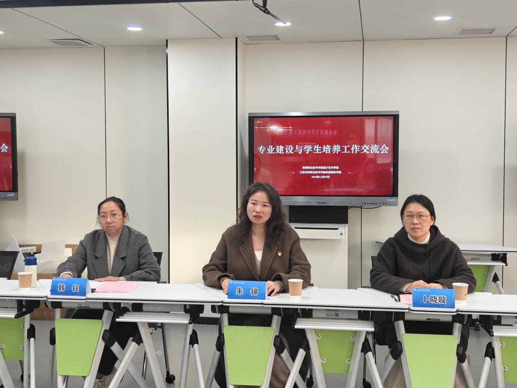 智慧教室会场主要围绕专业建设和学生培养方面来展开交流。风景园林学院党总支副书记朱锦带领环境艺术设计专业教师与无锡职业技术学院设计艺术学院专业教师就各院系专业设置、人才培养、创新创业等方面进行了深度的交流。
