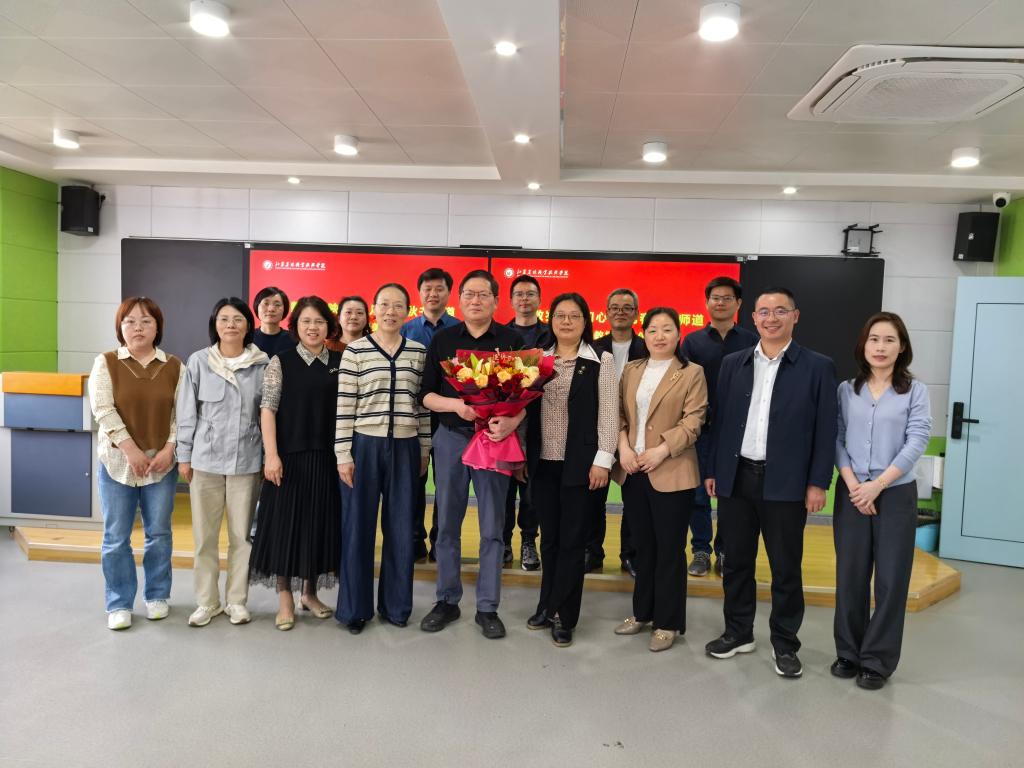 工会、离退休办公室负责人分别为杨天明教授献上鲜花和慰问卡。与会人员合影留念,记录这温馨美好时刻。这场荣休座谈会,既感谢了退休教师的长期坚守和无私奉献,也进一步激发了在岗教师的教育情怀。