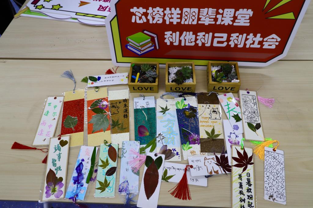 读书会分为阅读赋能、艺术疗愈两个环节。阅读赋能,在书香中汲取奋进力量。在“阅”见自己读书分享环节,学生代表带来跨越文学、历史、励志题材的多元解读。艺术疗愈,在创作中绽放青春风采。同学们利用色彩斑斓的花瓣、叶片,在专业工具的帮助下,充分发挥创造力与想象力,精心构思设计,压膜封装后,一枚枚独一无二的压花书签诞生了。这些书签不仅是阅读的好伴侣,更承载着同学们的巧思与对生活的热爱。