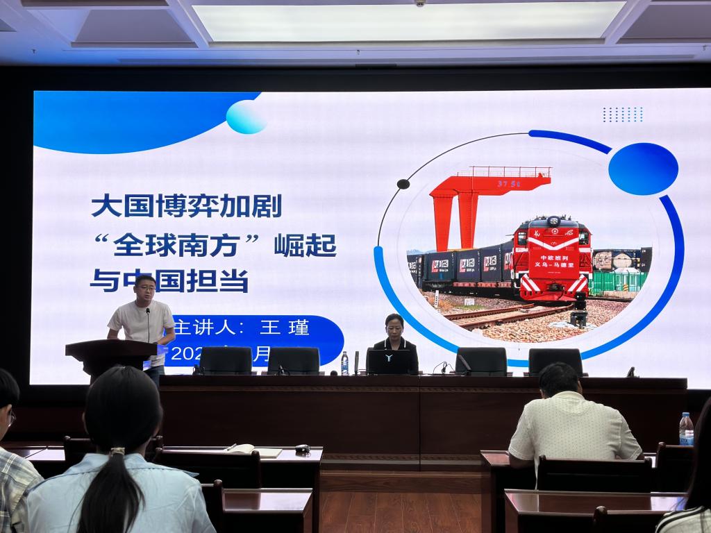 王瑾通过和学生互动的方式,从“什么是大国博弈”“大家如何理解全球南方”切入,通过历史与现实案例,从大国博弈加剧、“全球南方”崛起、中国担当三个方面分析了当前国际竞争的新态势。王瑾详细阐释了“全球南方”的概念及其在全球治理中的崛起趋势,“全球南方”国家正成为推动多极化、维护公平正义的重要力量,而中国始终是“全球南方”的天然成员和坚定伙伴。在谈到“中国担当”时,她列举了共建“一带一路”、构建人类命运共同体等实际案例,指出中国以开放包容的姿态为世界提供公共产品,展现了负责任大国的风采。